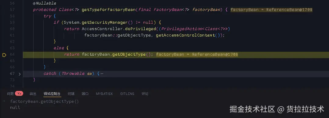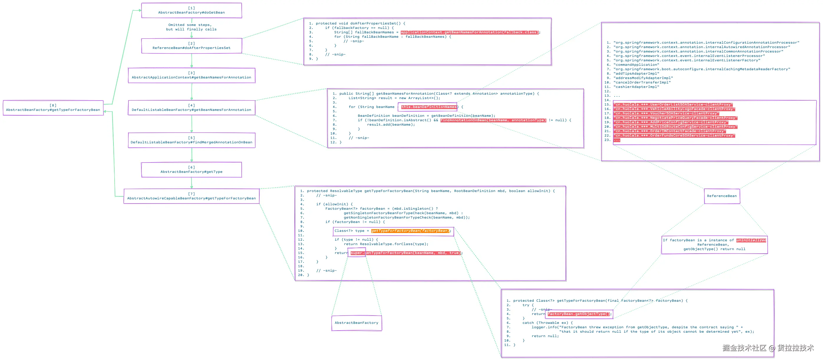 doGetBean()方法以实例化 Bean 的根本原因是getObjectType()返回了null,这是因为ReferenceBean重写了getObjectType()方法。开发人员需要不仅了解getBeanNamesForAnnotation()的具体实现细节,还需要认识到ReferenceBean#getObjectType()方法的风险点,方能发现这种潜在风险; -