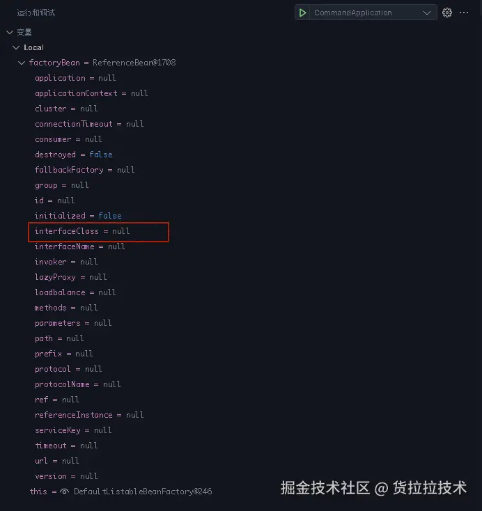 前者(ReferenceBean.java:36)是问题的起点,设置这个断点后可以查看到问题开始的具体位置,见。