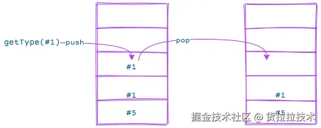 | 15 | 继续遍历 B,getType(B) 入栈,然后 return 出栈。 | ||