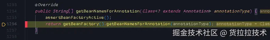 | 3 | AbstractApplicationContext#getBeanNamesForAnnotation() | 执行该方法,它实际调用的是 DefaultListableBeanFactory#getBeanNamesForAnnotation() 方法。 |