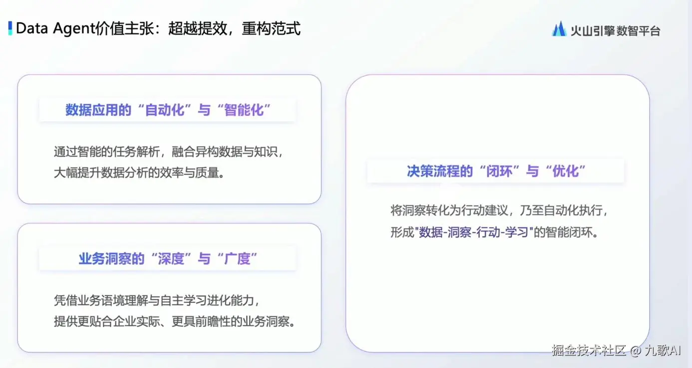 数据在AI时代应该怎么用?企业数字化有几个成功的?这是Data Agent应该解决的问题,提供一种新的决策方式。如何将数据价值最大化并有效地应用于实际业务场景中。