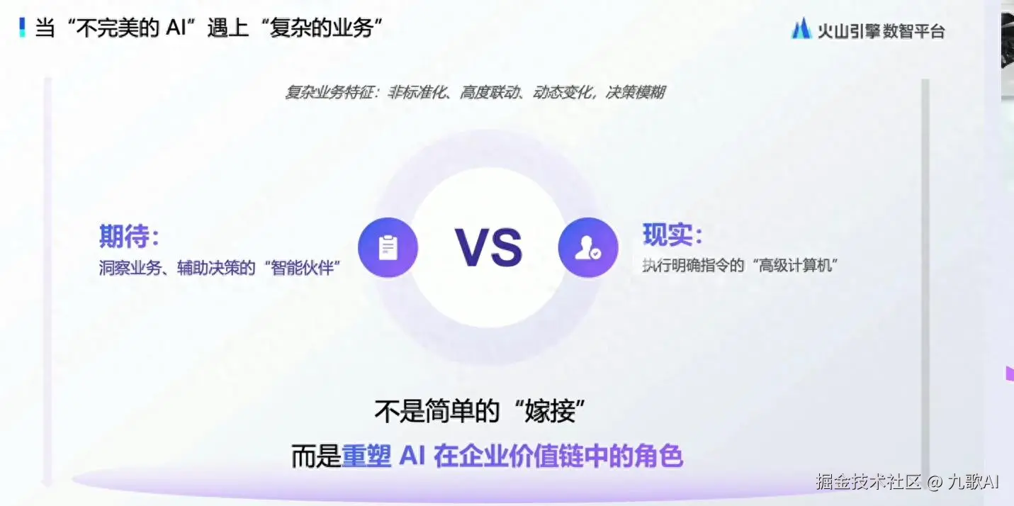 AI是不完美的,AI在将来很长时间,也是不完美的。AI将在很长的时间,承担辅助、提效的工具角色。通用Agent无法解决企业中复杂的业务问题。AI工具的简单堆积,并不能解决数据赋能业务的落地难题。