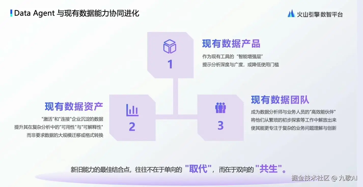 Data Agent 虽然是个数字员工,但是不会替代原有的数据团队,而是和原有员工共生,一起成为业务团队的左膀右臂。