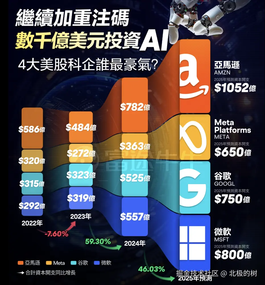 目前已经成为了我日常使用的主力AI模型),看今年一季度的财报,Google One的订阅付费用户已超过2.7亿,同步增长18.7%的“谷歌订阅、平台和设备”部门收入也证明了其潜力。 - AI赋能下的Google Cloud: AI为Google Cloud带来了差异化优势,它的Vertex AI平台上的Gemini使用量已增长了40倍,吸引了大量企业客户。这一点在财报上也有体现,根据今年一季度财报,Google Cloud营收达到122.60亿美元,同比增长28.05% ,增速领跑主要业务。更重要的是,其营业利润达到22亿美元,营业利润率从去年同期的9.4%大幅提升至 17.8% 。Google Cloud看起来是谷歌AI战略非常重要的支柱。再加上谷歌在I/O 2025 上介绍的自研第七代TPU "Ironwood"能显著提升模型性能并有效降低运营成本的优势,谷歌的软硬结合能让其相比于其它厂商在推动AI技术规模化的路径中有更大的优势。