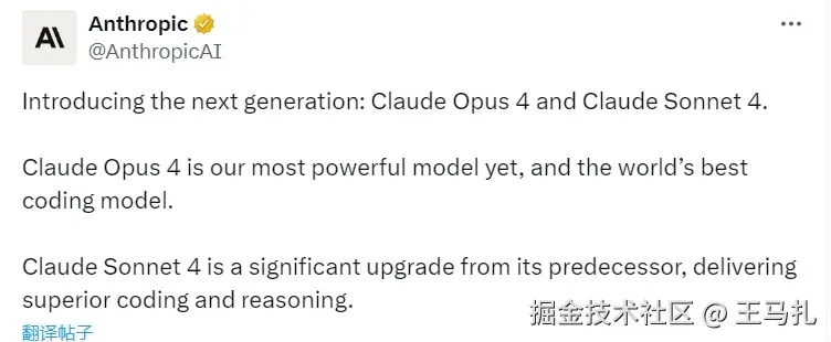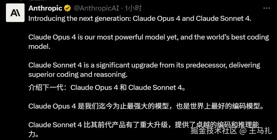 Anthropic再次引领行业潮流,于2025年5月22日正式发布了Claude 4系列的两款重磅模型:Claude Opus 4和Claude Sonnet 4。