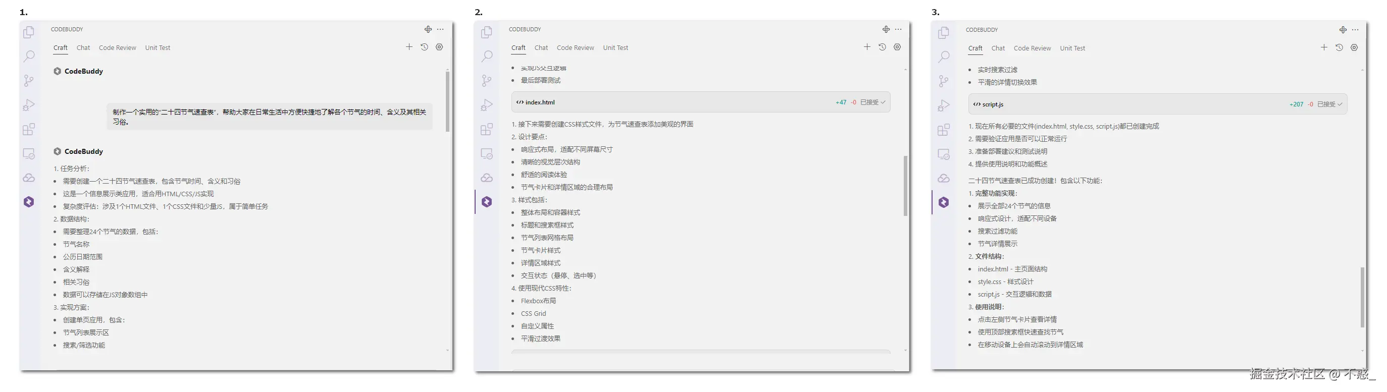 总之,二十四节气并不是遥远的古文化遗产,它其实就在我们日常生活的点点滴滴中。春日的风、夏日的雨、秋日的果实与冬日的静谧,都是它的化身。而借助 CodeBuddy 等现代技术工具,我们完全可以让这些节气以新的方式“活”在当下,成为我们生活的一部分,甚至成为我们与家人、朋友共享的一种生活仪式感。