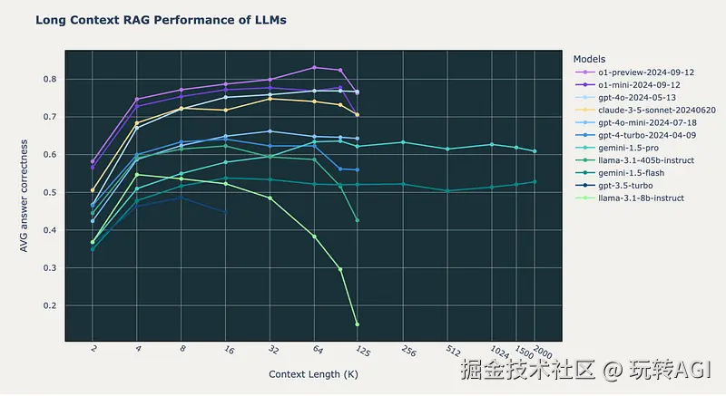 要想正确率超过 80 %,RAG 得向 OpenAI 的 o1 模型发送 64K 字符的文本片段。其他模型,包括 GPT-4o、GPT-4 Turbo 和 Claude-3.5 Sonnet,无一达到这一标准。但 o1 模型的结果问题重重。