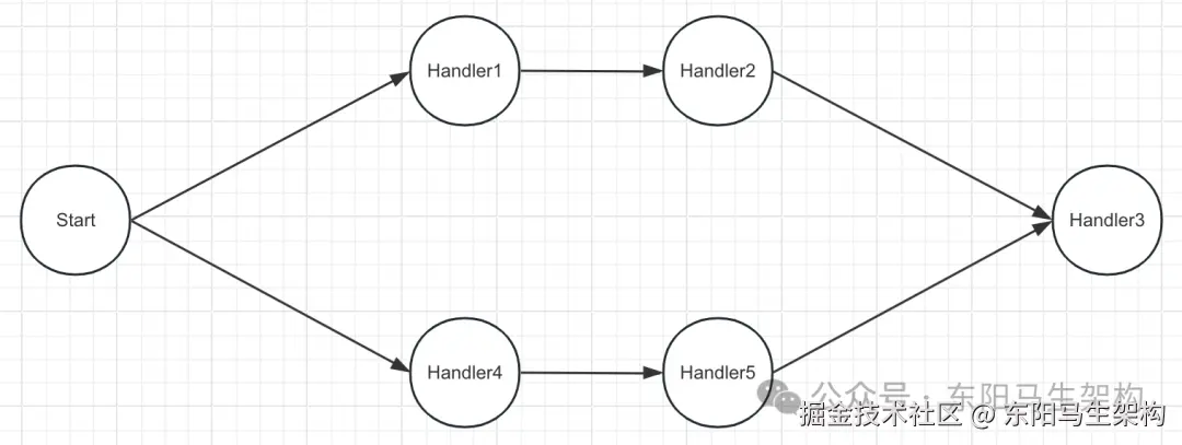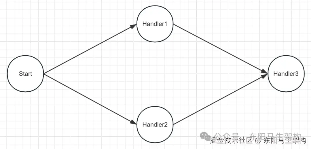 菱形操作方式一:调用handleEventsWith()方法时传入多个参数 + 链式调用。