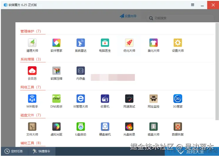 集成了30余款各式各样的实用系统辅助小工具,绿色、全面而且强大