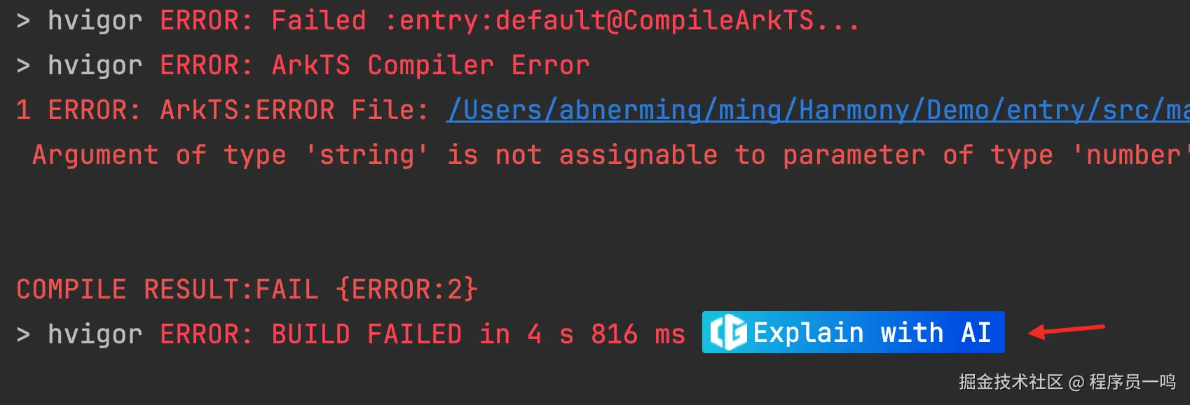 当你运行时,控制台会输出报错信息,但是会多出一个AI选项,我们可以进行点击进行智能分析。