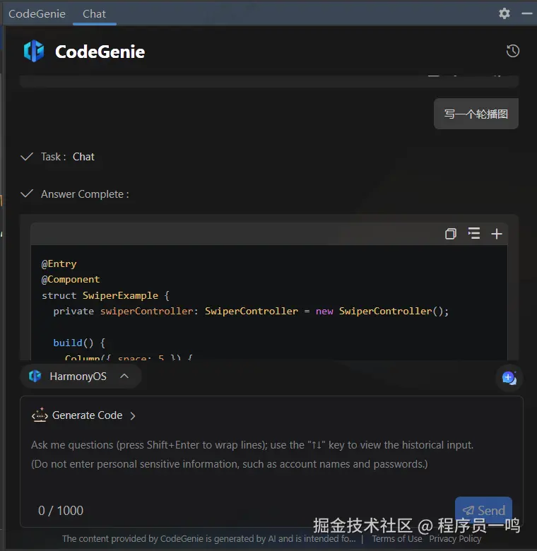 上篇文章,我们简单了解了DevEcoStudio中自带的AI编程工具CodeGenie,不知道大家是否有上手体验,它和大多数的AI工具基本一致,但是又有自己的一些特点,支持智能问答,也支持代码生成,由于是IDE自身所带,所以在鸿蒙编程语言领域中,其结果相对来说相对比较精确,可以说是“一骑绝尘”。
