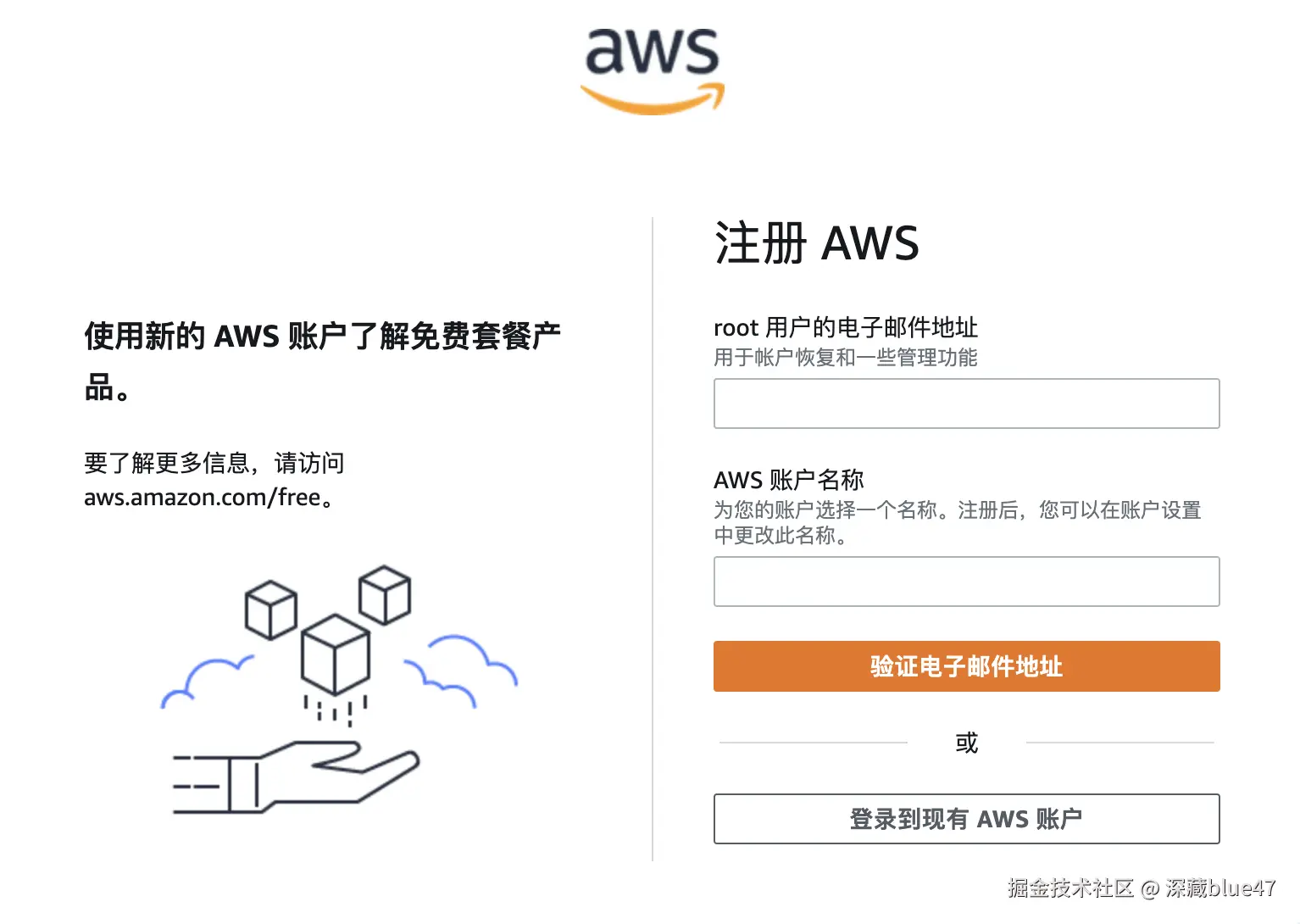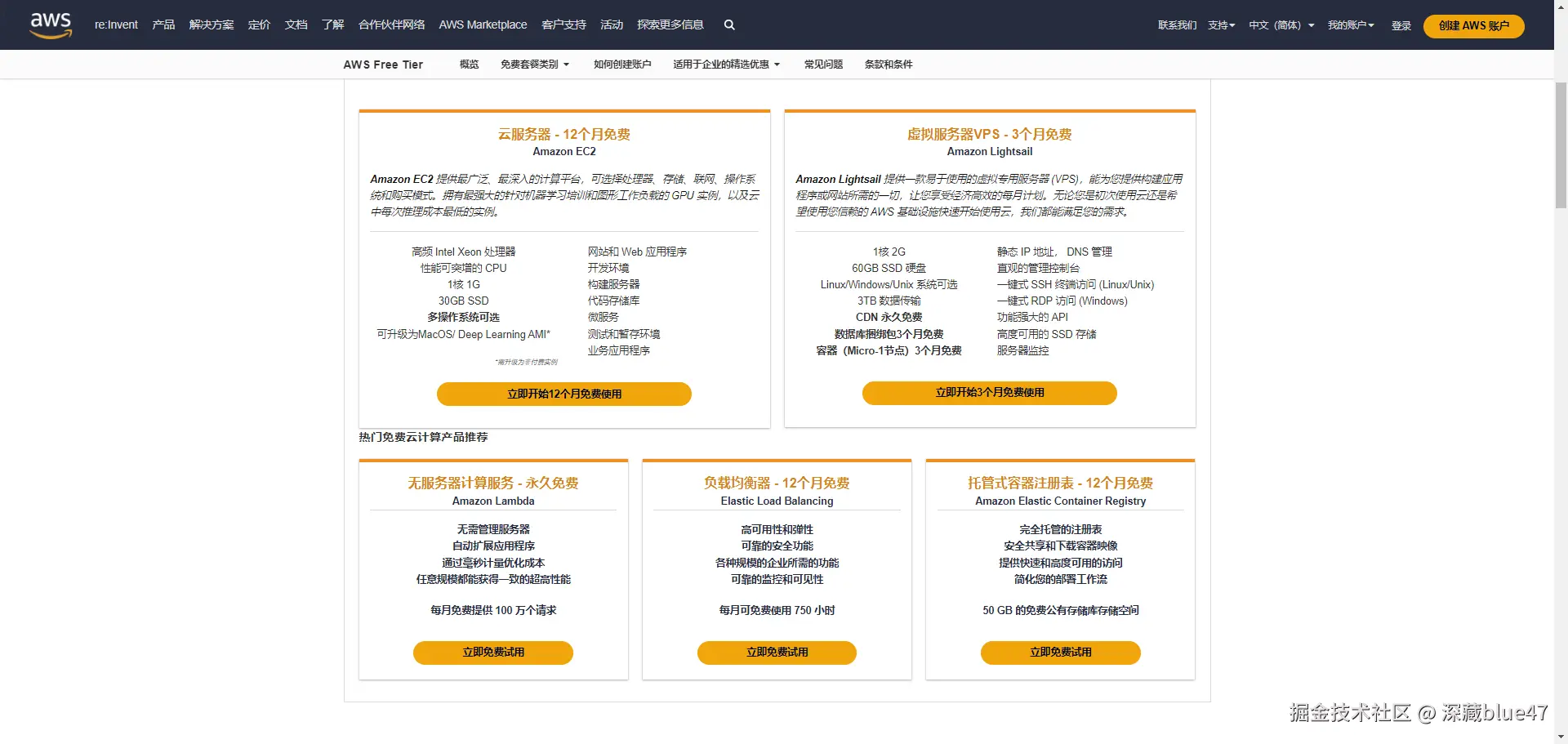访问免费套餐页面 打开 AWS 免费套餐官网: