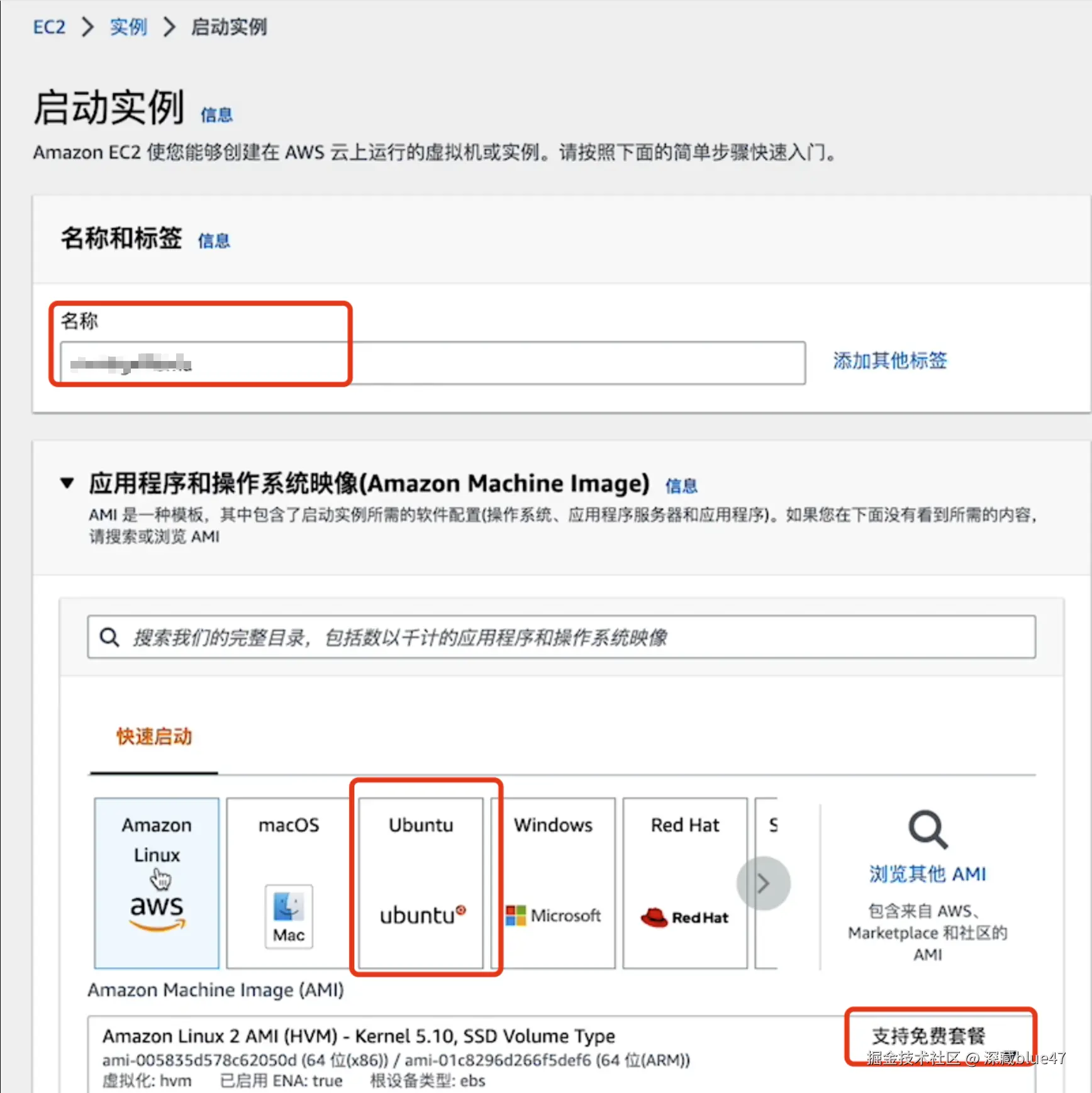 - 镜像(AMI):Ubuntu Server(免费)