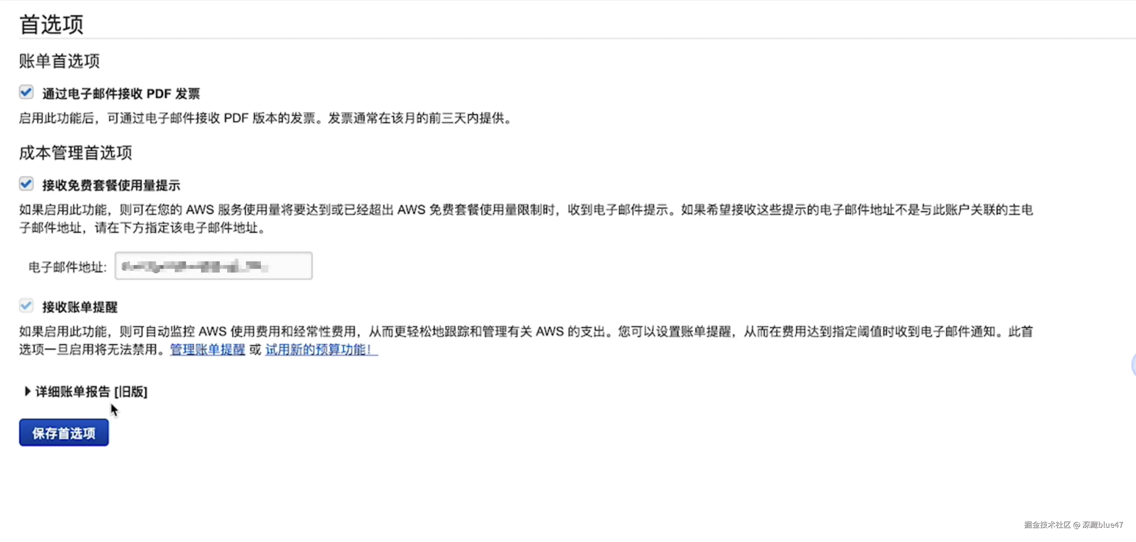 - 费用监控:AWS 控制台 → 账单与成本管理,设置预算提醒。