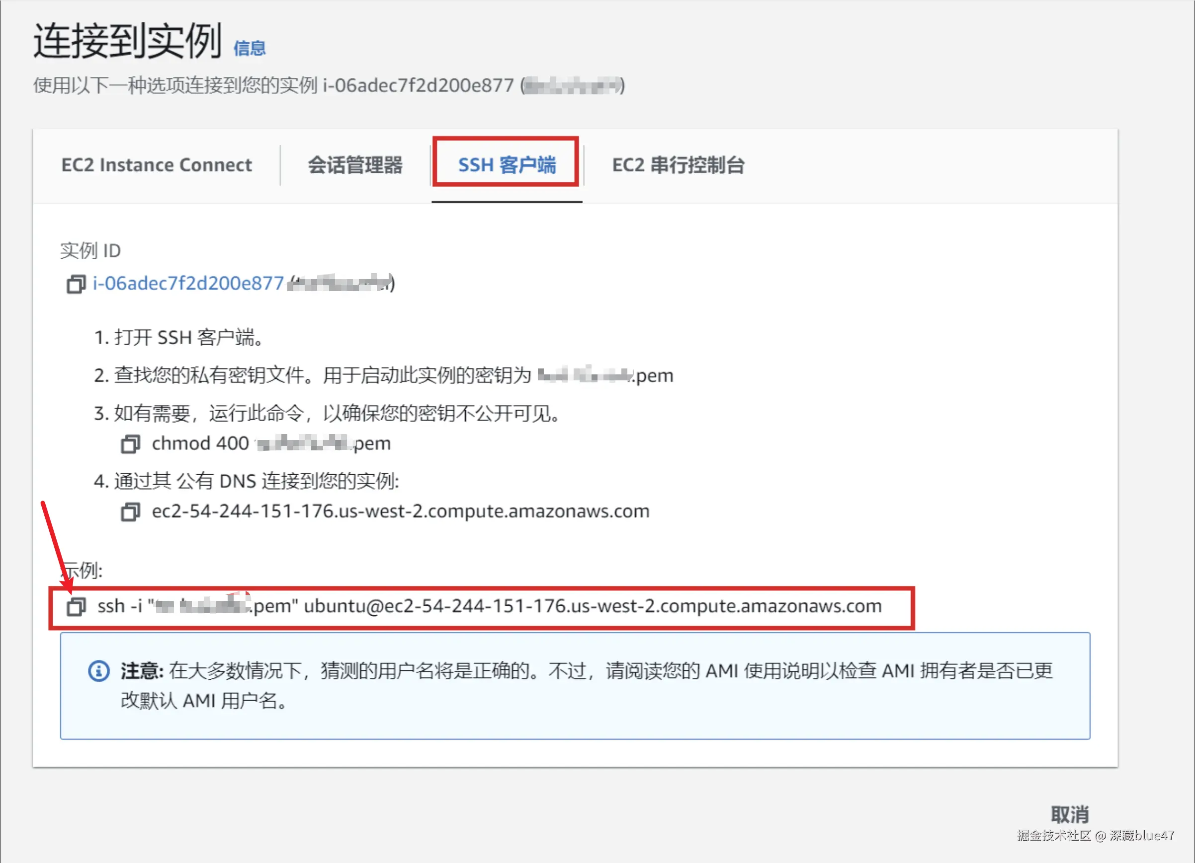 ssh -i your_key.pem ubuntu@<PublicIP> - macOS / Linux:Terminal 同上