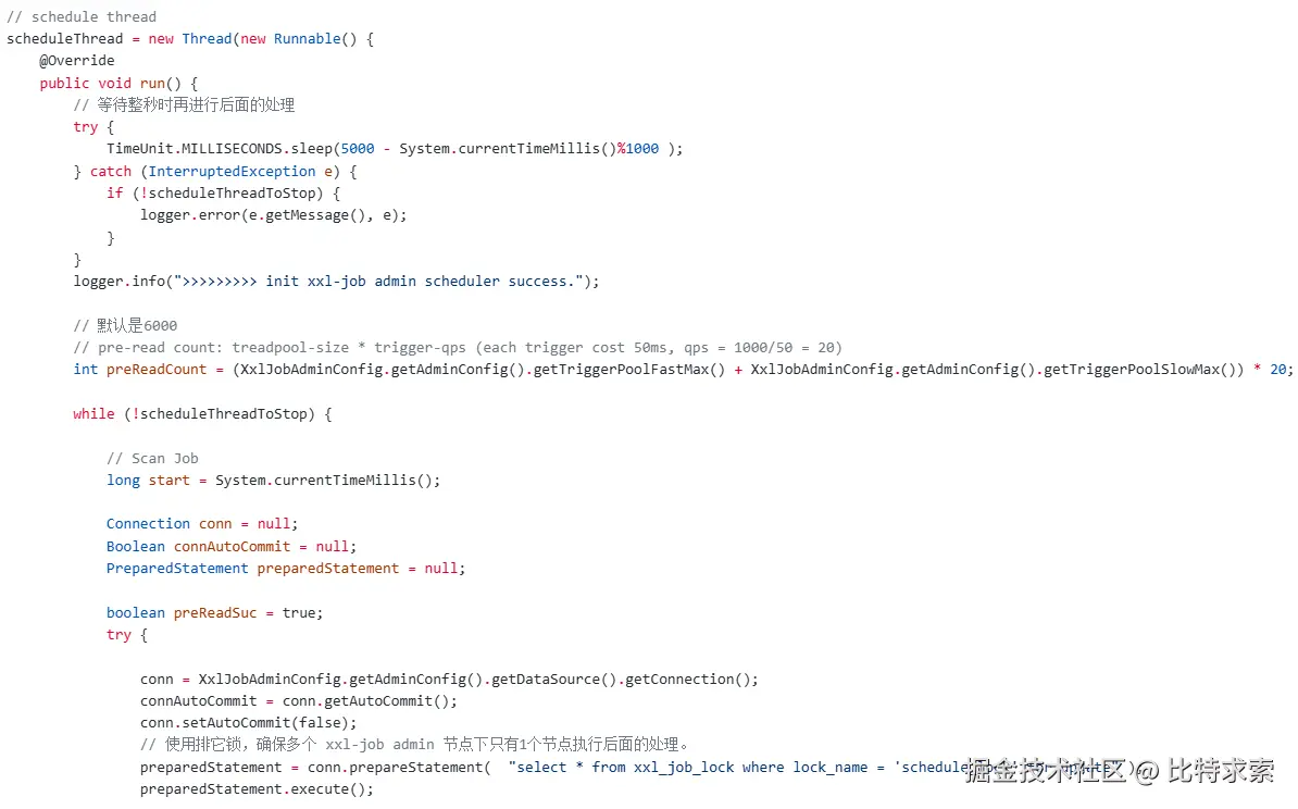 com.xxl.job.core.executor.impl.XxlJobSpringExecutor 实现了 Spring 框架的 SmartInitializingSingleton 接口,在 Spring 所有单例 Bean 创建完成后会回调 afterSingletonsInstantiated 方法。