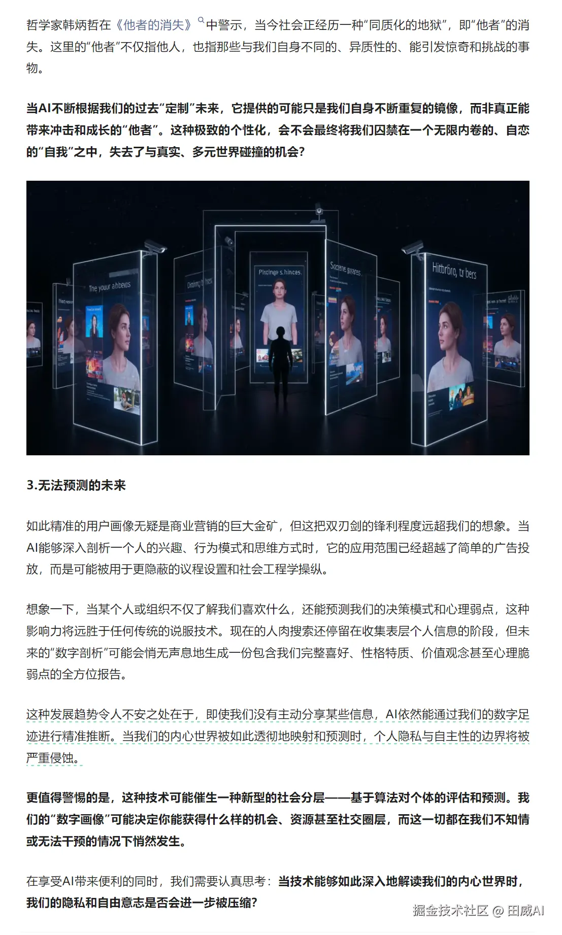 然后在AI生成内容的基础上,加上我的修改优化,有了下面这一段对于“个性化AI”可能会带来的问题的思考。