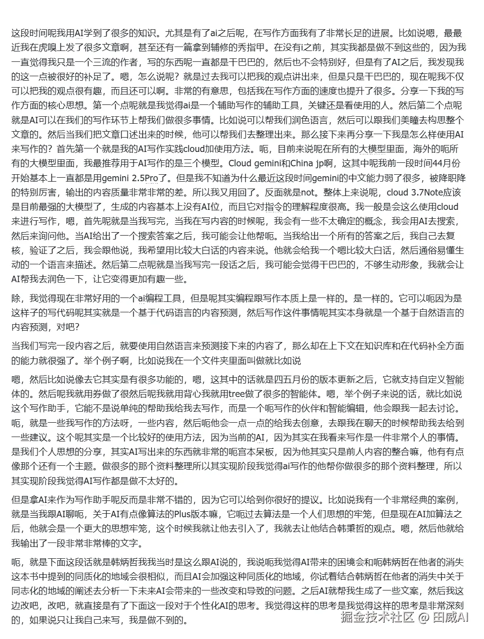 前面提到过现在写作一般都会先口述,让AI整理,最后再手搓。