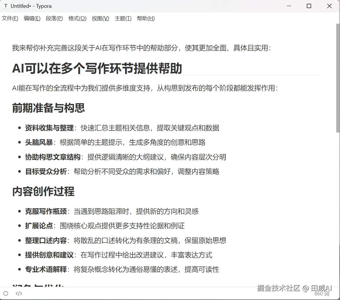 这种从混沌到清晰的蜕变过程,恰恰是 AI 辅助写作的魅力所在。