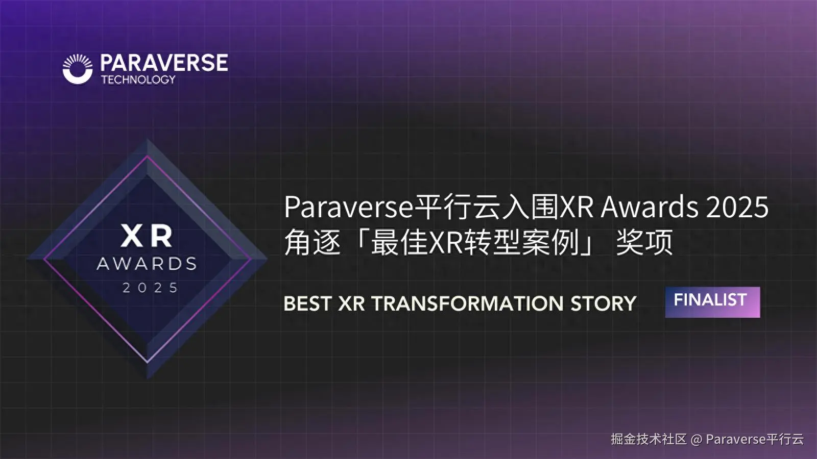 Paraverse平行云成功入围国际权威XR Awards 2025「最佳XR转型案例」(Best XR Transformation Story)奖项决赛。此次入围印证了平行云实时云渲染技术及其在企业数字化转型中的卓越应用获得全球认可。