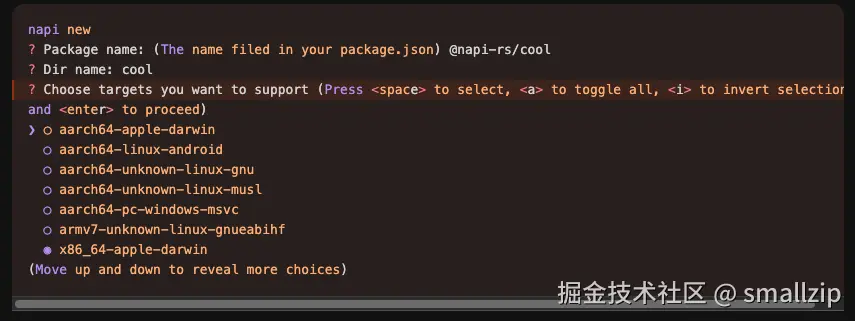 按照官网的流程,安装napi-rs,并初始化项目。