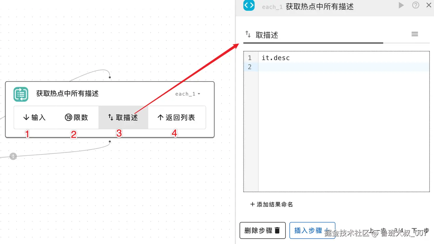 - 取描述:获取每一项中的描述字段