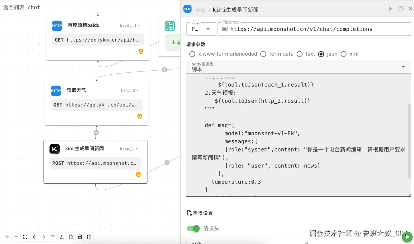- 将热榜描述与天气信息一起发给Kimi大模型生成稿件