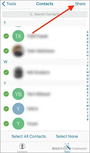 1.选择您要转移的联系人。