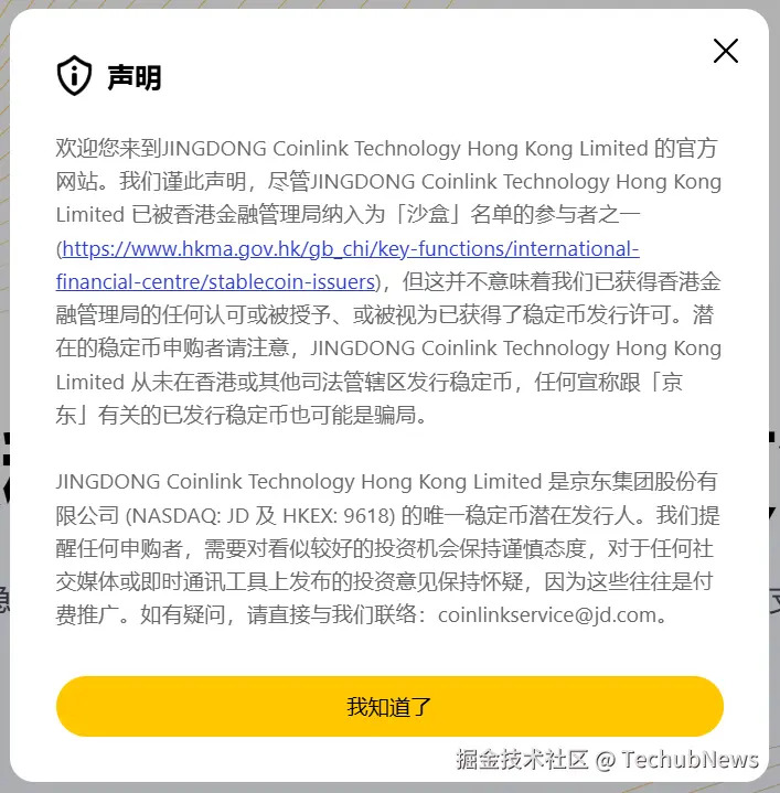 京东币链科技于 2024 年 7 月入选香港金管局公布的首批 「稳定币沙盒」 参与者,也成为公众最为关注的企业之一。