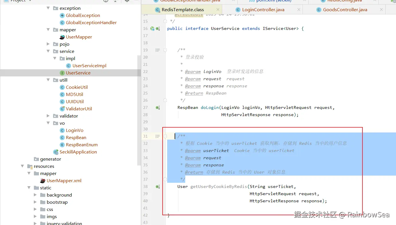 import com.rainbowsea.seckill.service.UserService;