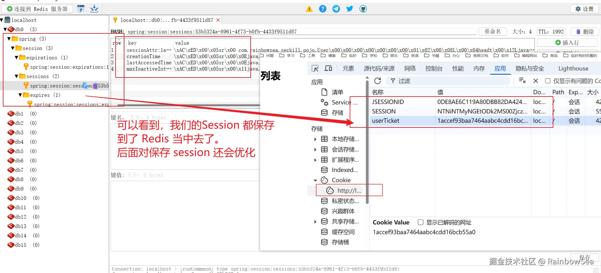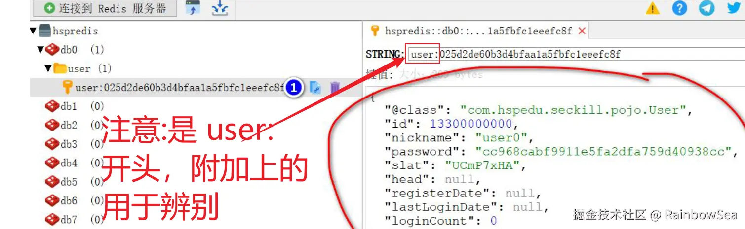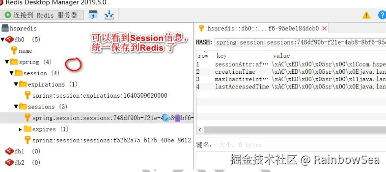 测试:运行查看,我们在 Redis 保存的信息是否,符合我们的预期:
