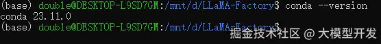 在D:\llama-factory目录下,linuxshell下打开命令提示符,依次输入以下命令安装conda,此处安装miniconda3: