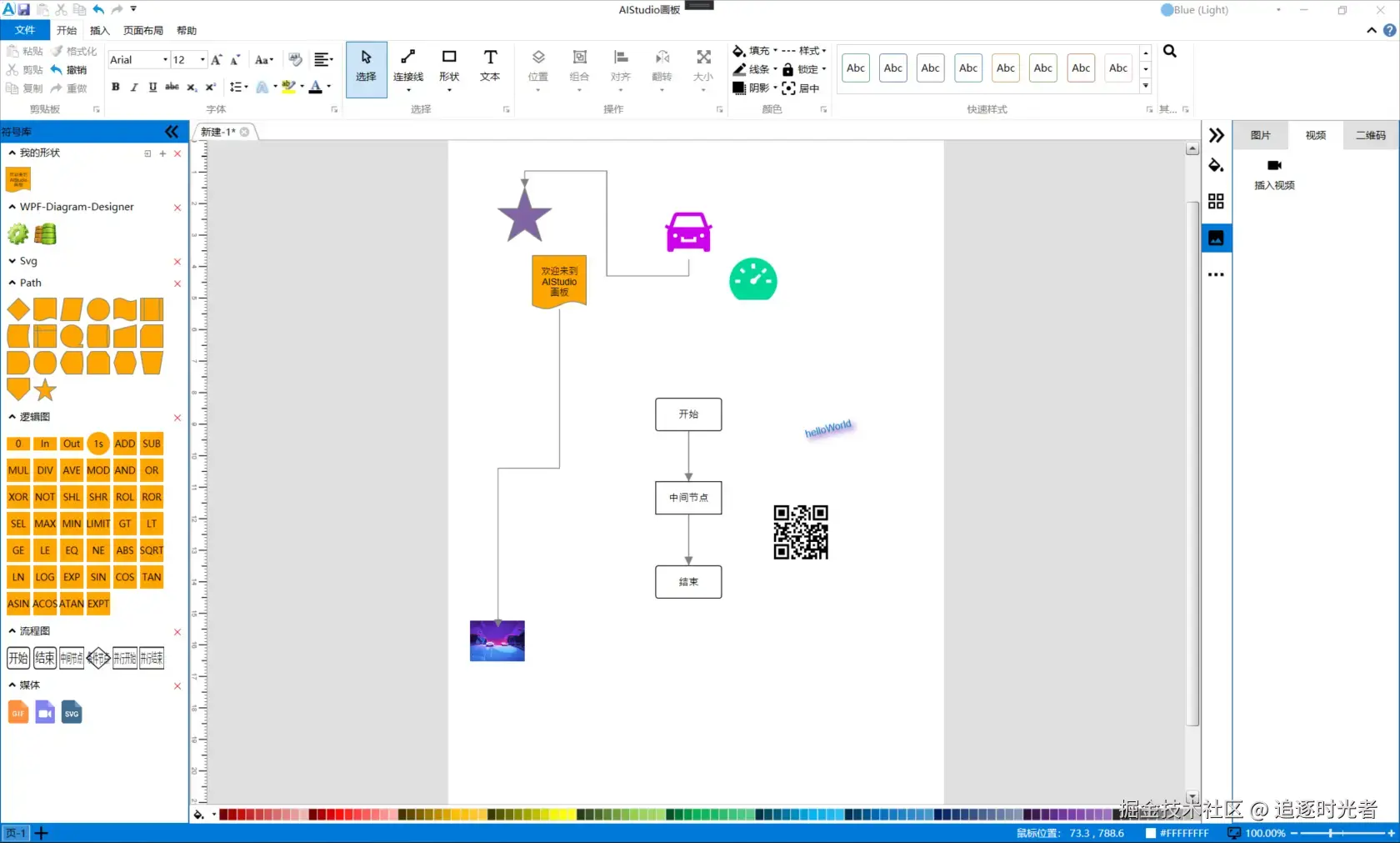 AIStudio.Wpf.Diagram 是一个使用 WPF 开发、开源(LGPL-3.0协议)的 Diagram 画板工具(包含流程图FlowChart,思维导图MindEditor),该画板在 WPF-Diagram-Designer 的基础上进行的开发,UI界面框架使用的是Fluent.Ribbon。