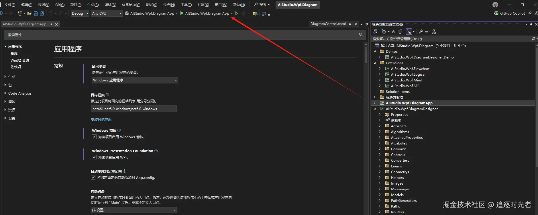 设置 AIStudio.Wpf.DiagramApp 为启动项目,运行查看效果: