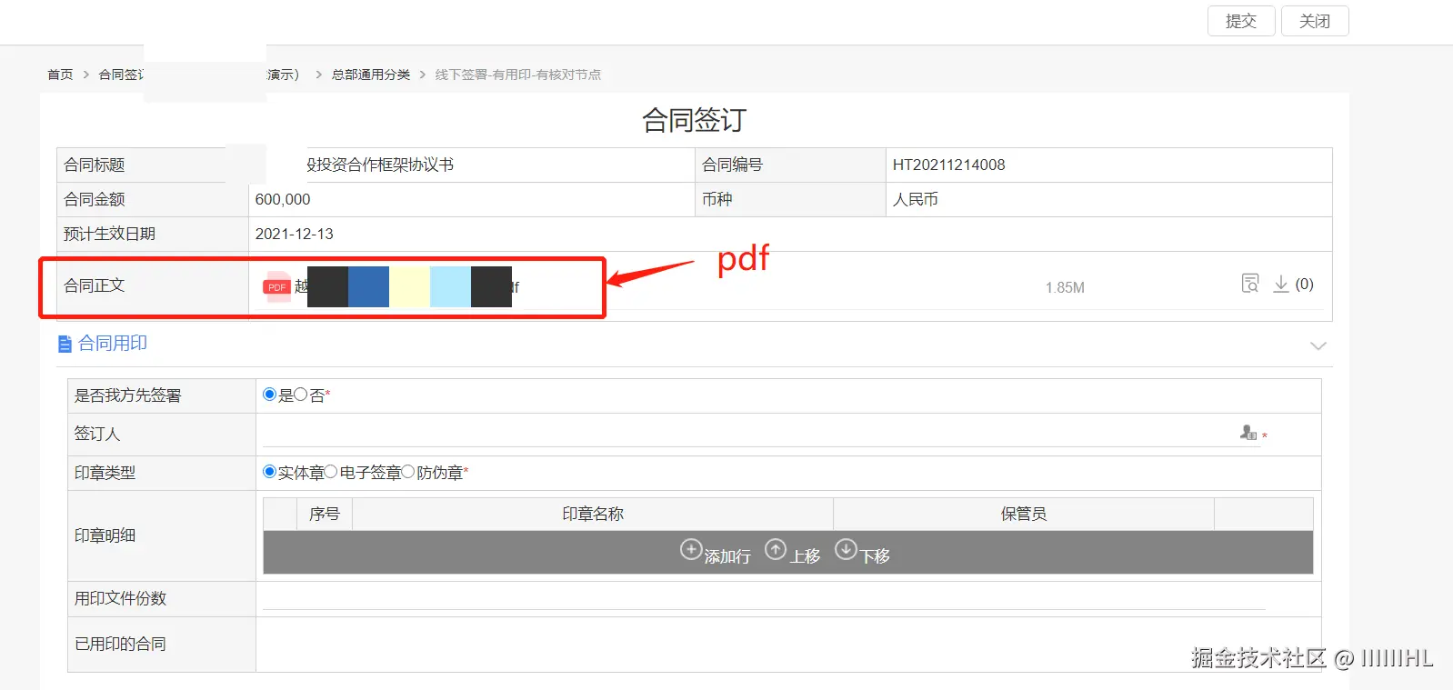 目前主流的合同管理系统会包含电子签署模块,如果后续定稿合同需要与对电子签系统衔接,weboffice可通过导出PDF版式文件,用于正式签署,以此规避跑版、误篡改的风险。对接方如需下载原格式文档,对应实现下载业务逻辑即可。