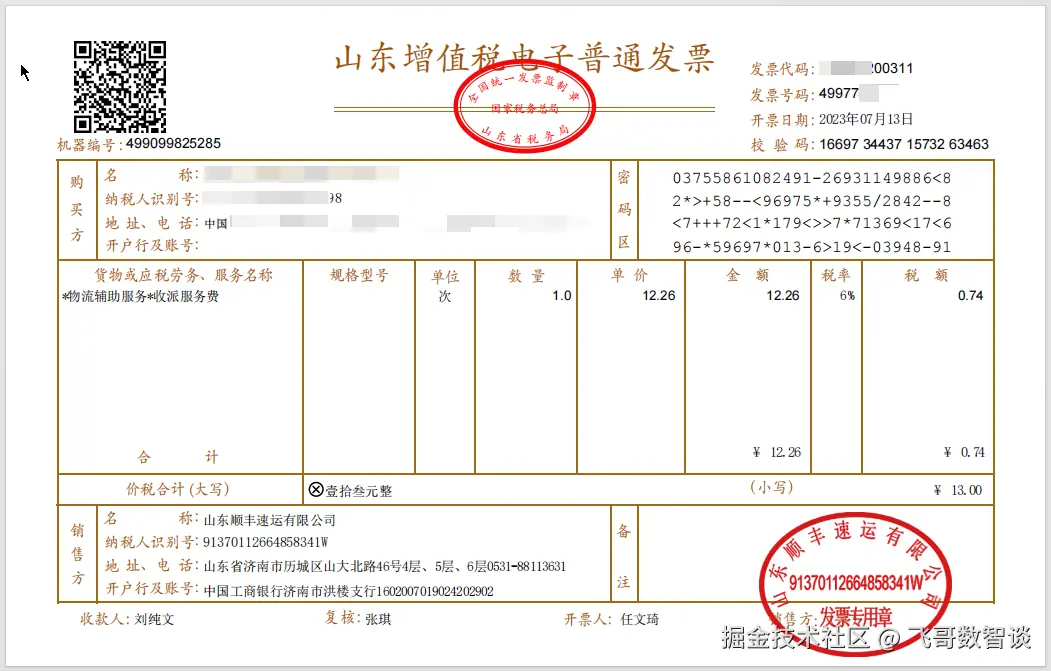 这次换了两张发票,为了更好的验证效果,特意选择的一张是之前的电子版发票样式,一张是新版电子发票样式的。