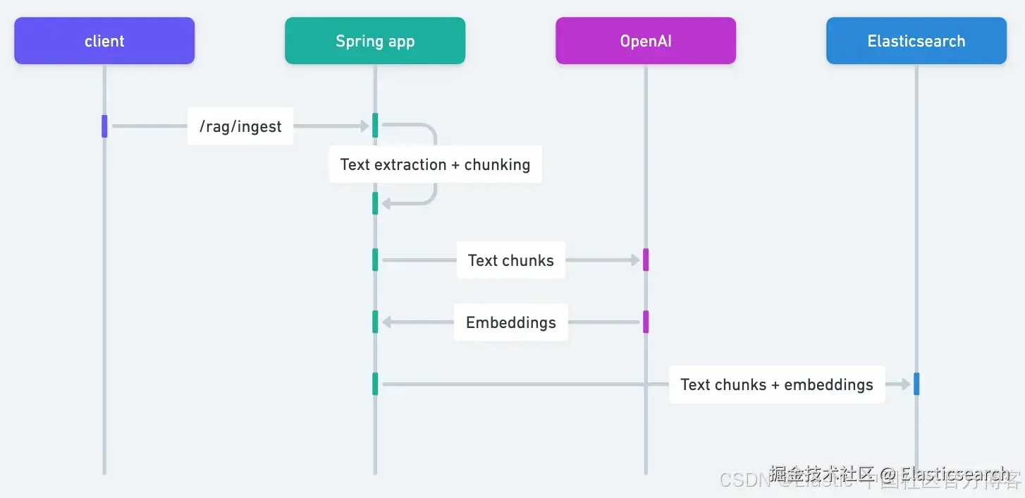 控制器只是调用了我们构建的一个服务,用来处理文件的摄取并写入 Elasticsearch 向量存储,然后方便地对同一个向量存储进行查询。