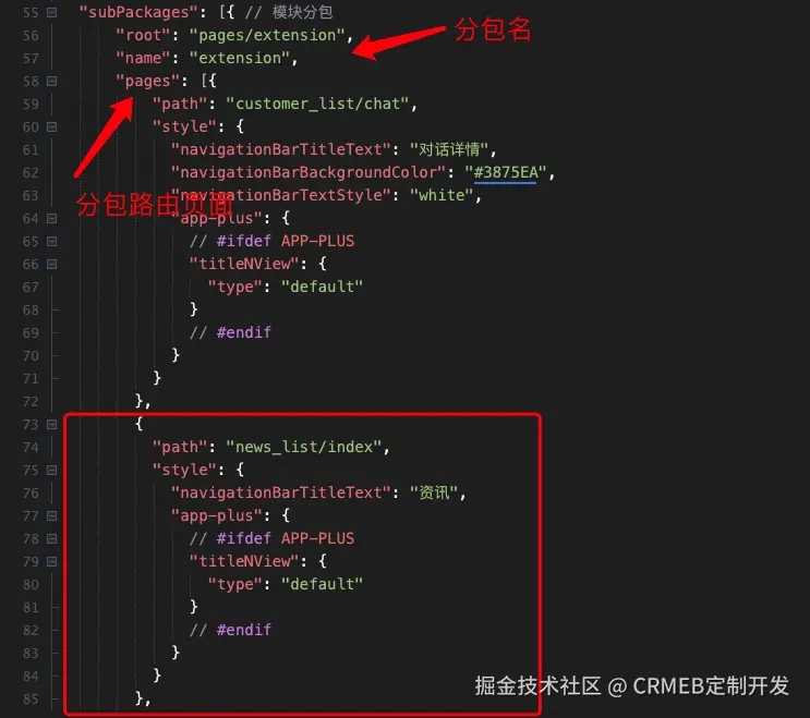 不存在模块需在subPackages中新增分包模块,在按照上一步进行创建页面路由。