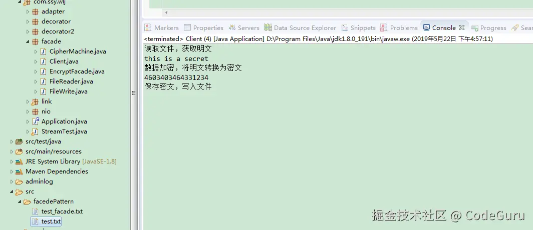 ef.fileEncrypt("src//facedePattern//test.txt","src//facedePattern//test_facade.txt" );