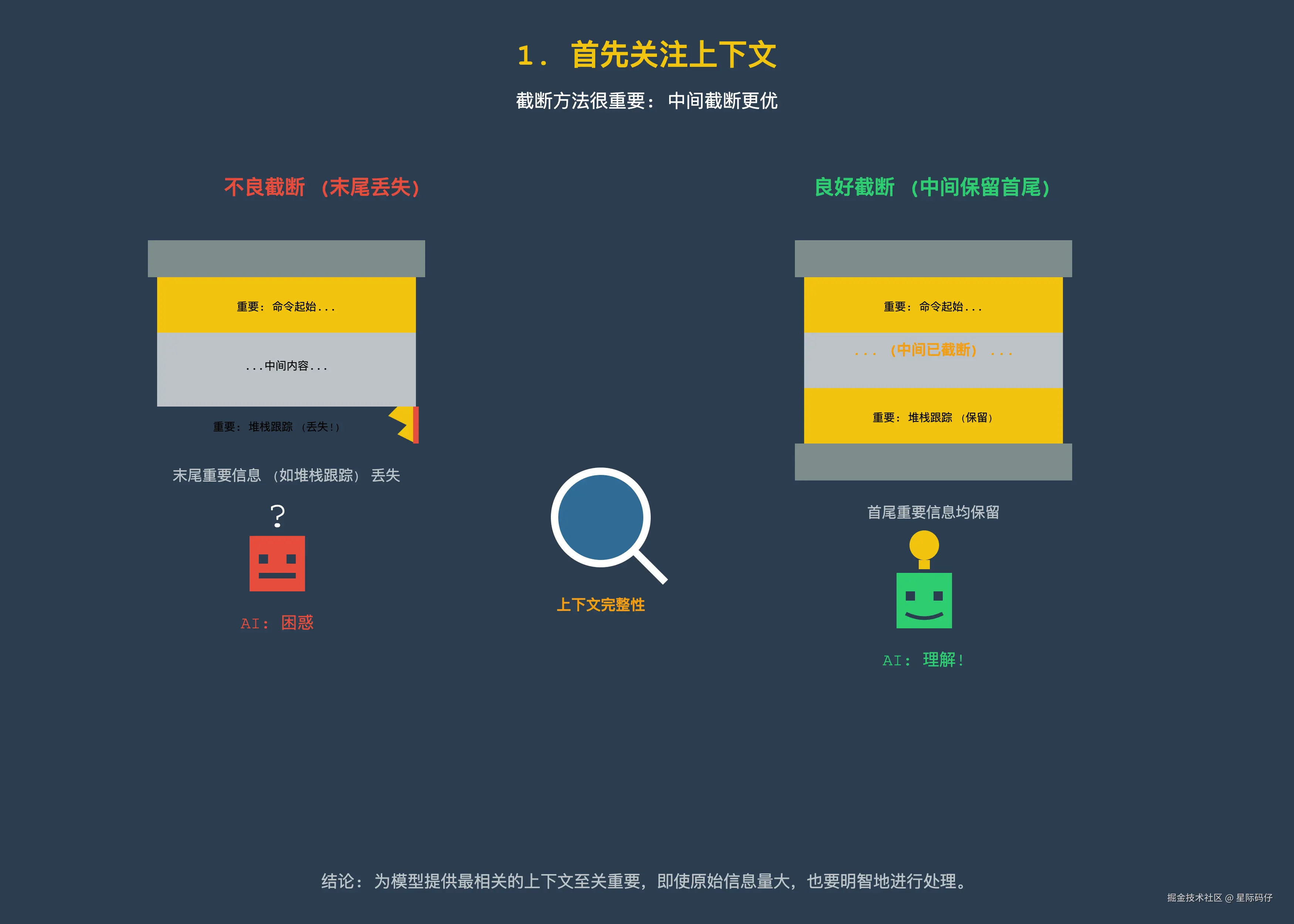 当我们得到了很长的指令输出结果,并且想要作为下一轮提供给模型的上下文,而由于过长需要截断时,截断的方法非常重要。