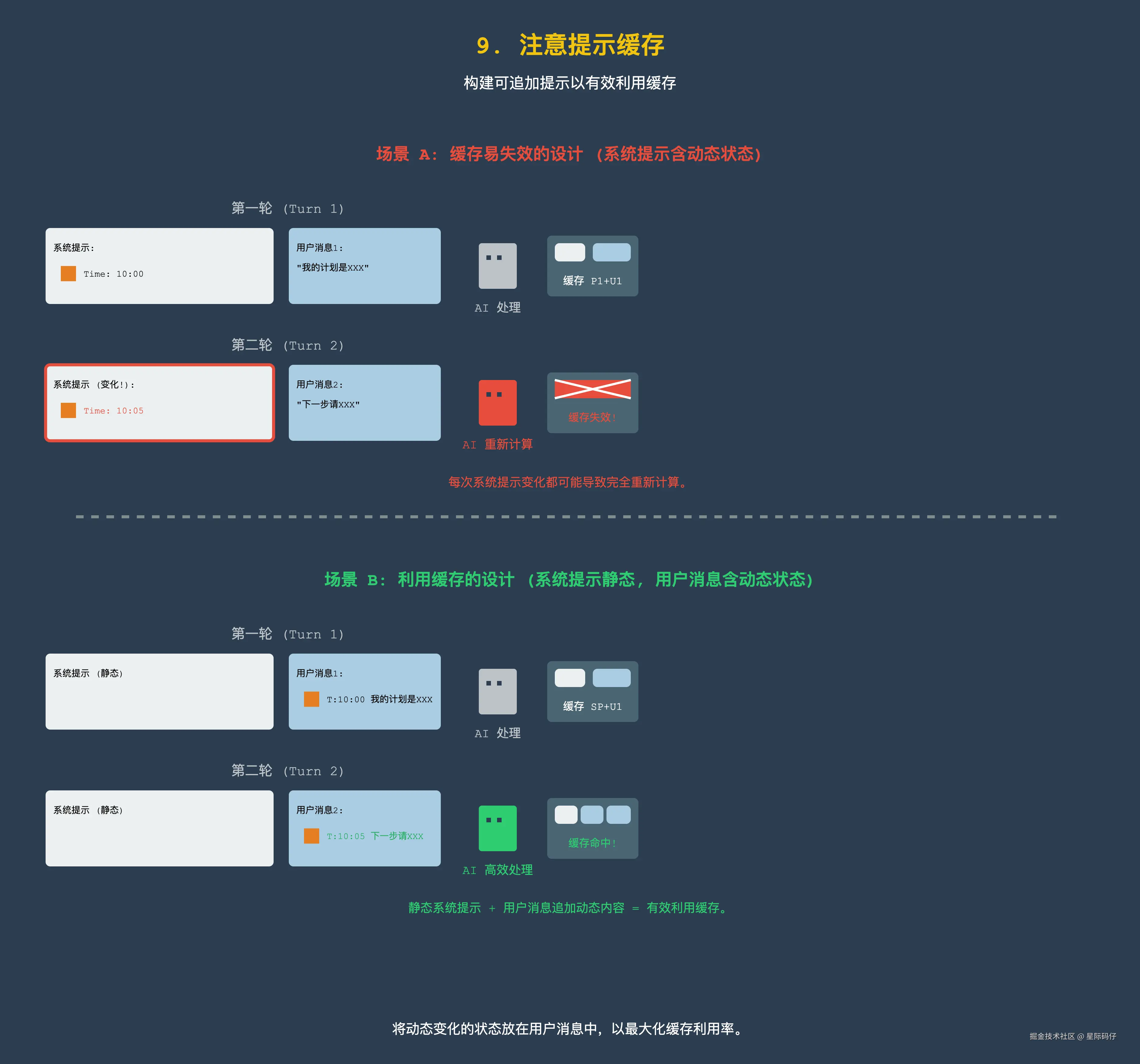 如果你的提示中,包含了像“当前时间”这样的信息,而这个信息在整个会话过程中是会发生变化的。