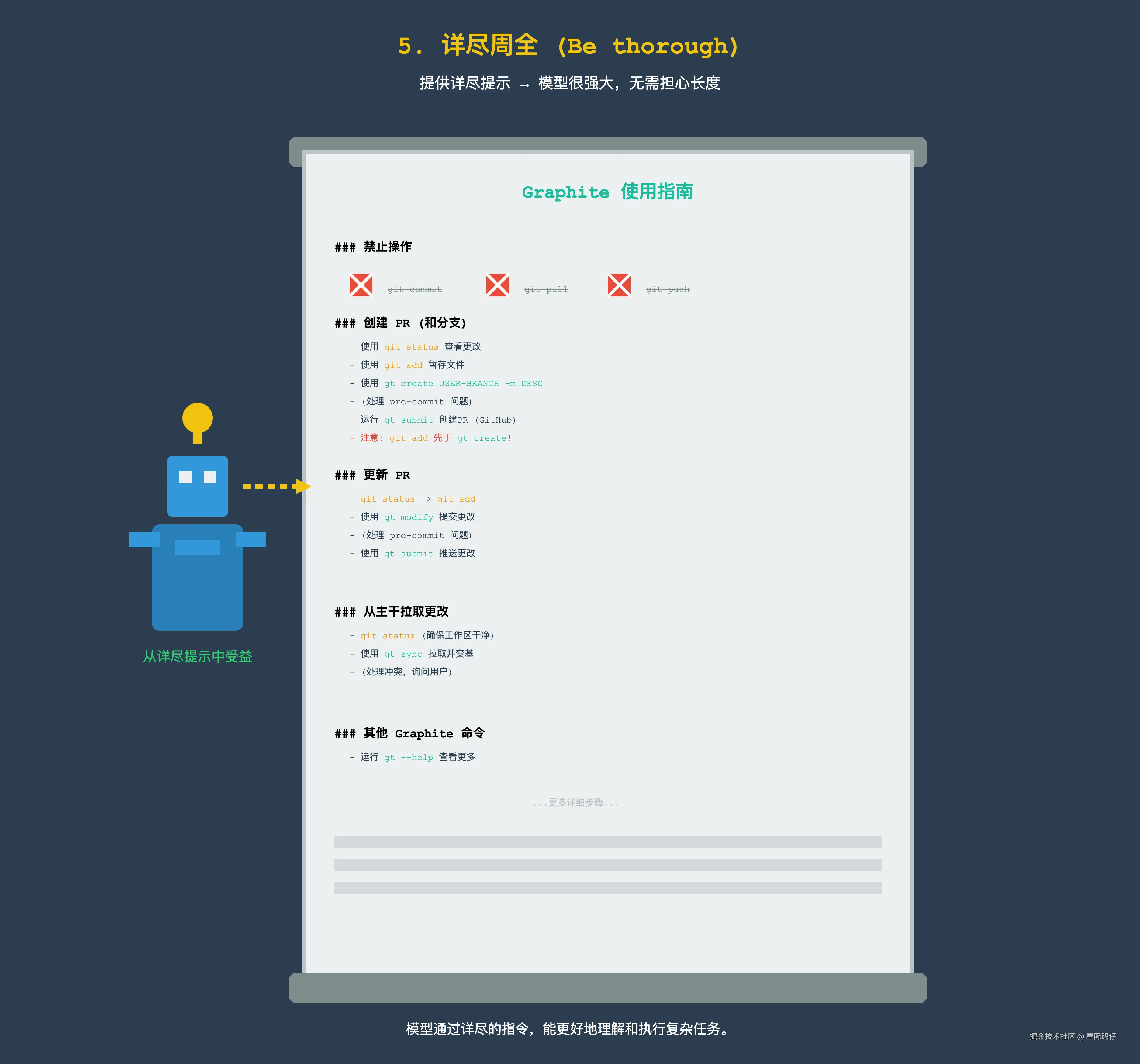 下面是一个成功且详细的提示示例。这个提示教模型如何使用一个名为 Graphite 的版本控制工具: