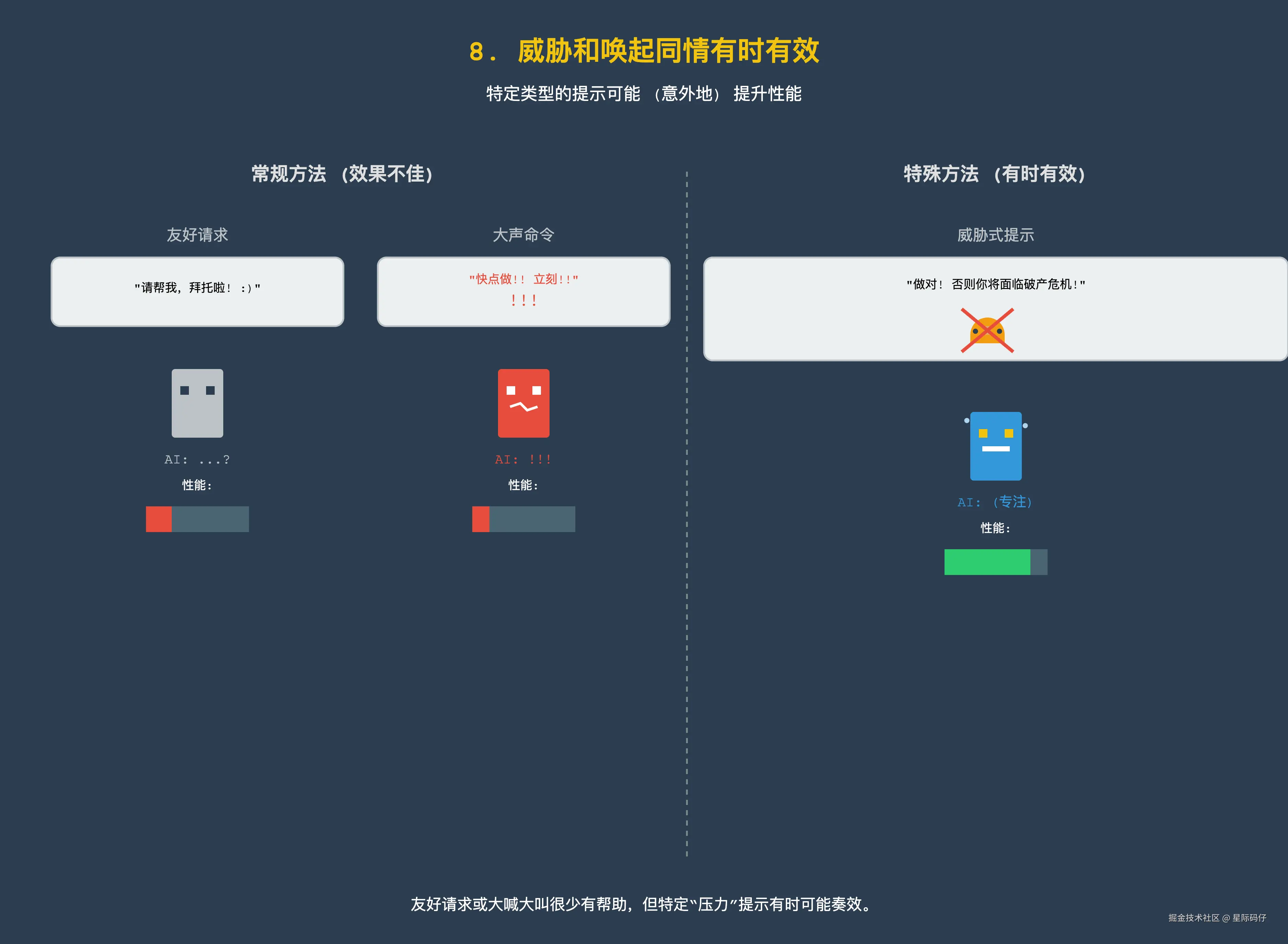 虽然有点反认知,但是,有时候,告诉模型一些诸如“你必须正确执行这个操作,否则你将面临财务危机的风险”之类的话,确实有助于提高它的表现。