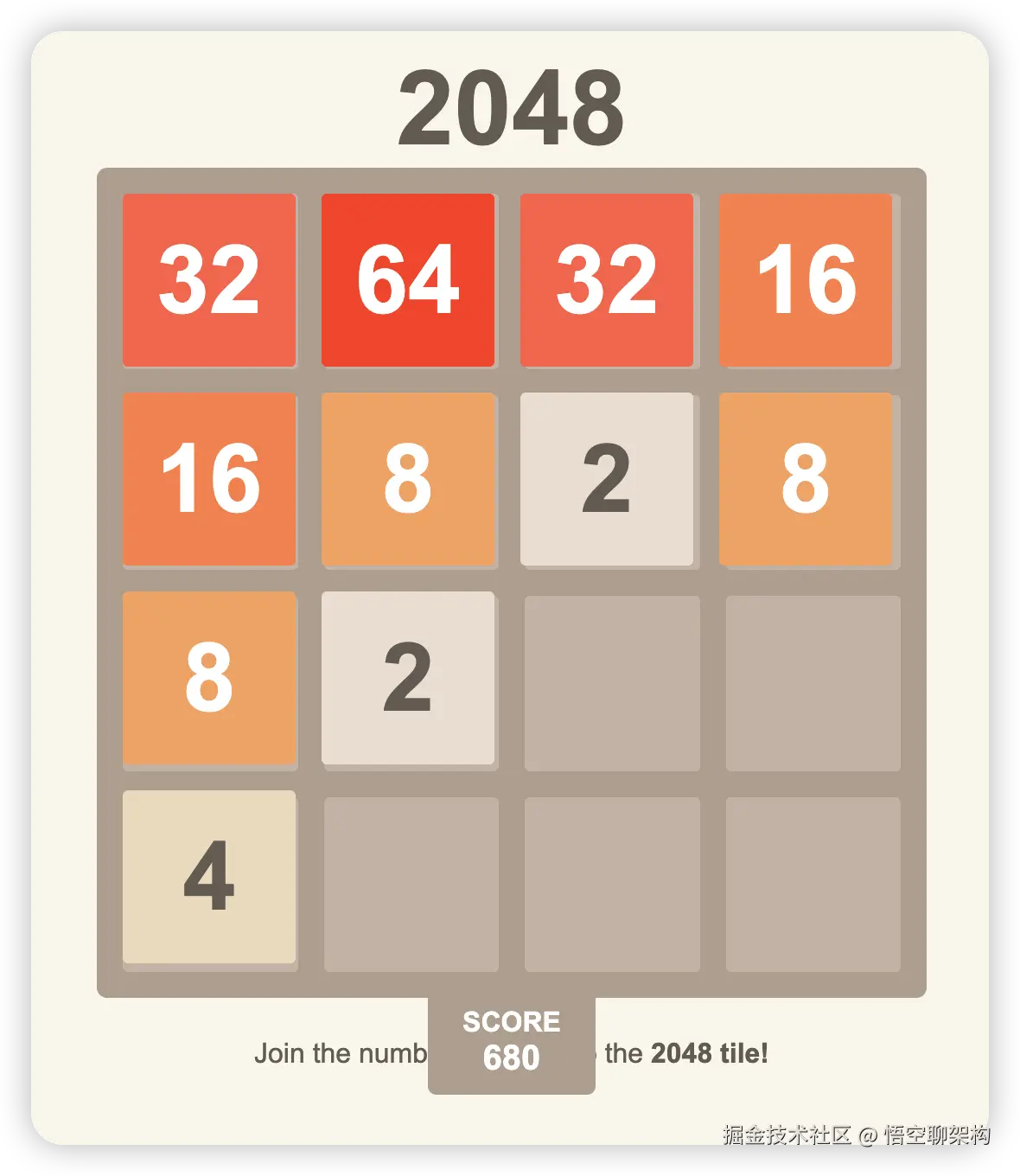 打开2048 游戏链接,就可以开始游戏了。