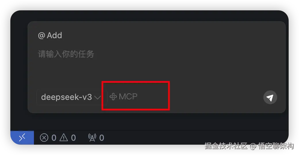 如下图所示,点击 CodeBuddy 对话框的 MCP 按钮。