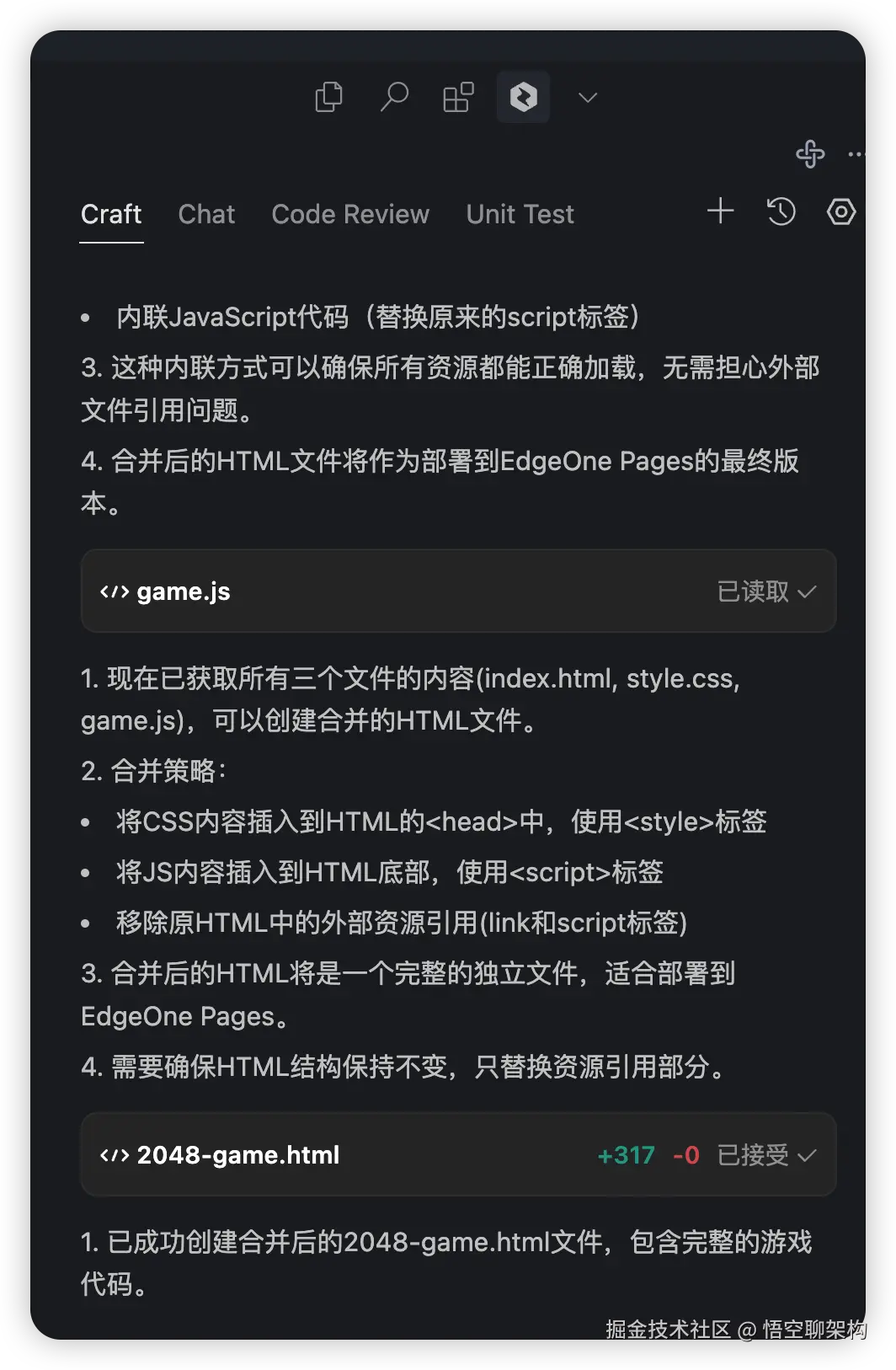 CodeBuddy 通过对话的方式生成代码文件,如下图所示:
