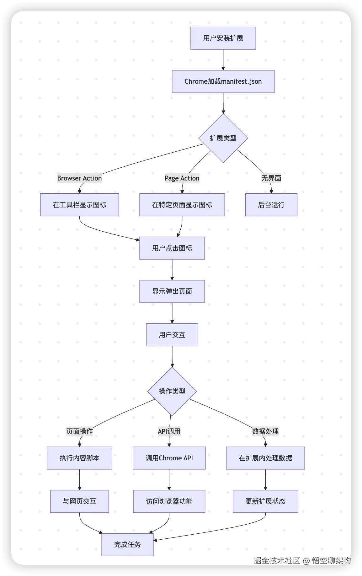 Chrome扩展是基于Web技术(HTML、CSS、JavaScript)构建的软件包,可以扩展Chrome浏览器的功能。以下是Chrome扩展的核心架构和工作原理: