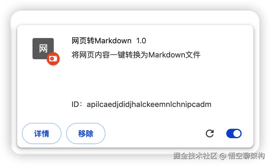 点击这个扩展,就会弹出转换为 Markdown。如下图所示:
