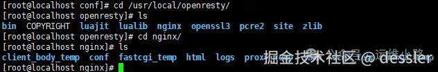 可以看出来这个启动命令实际还是Nginx,只是他封装成了openresty。Nginx目录里面的内容和编译安装Nginx基本一样,上层目录基本上就是Lua及相关信息。