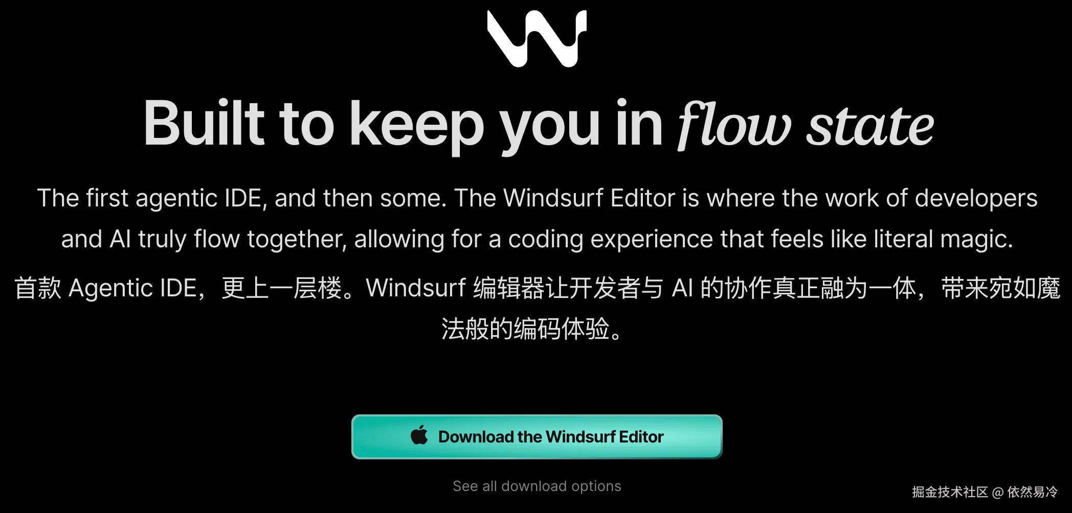 Windsurf 是由 Codeium 公司推出的一款 AI IDE工具,同 Cursor 一样,Windsurf 也是基于 VS Code 深度开发集成。这里说个冷知识,其实Windsurf的Agent模式,比Cursor推出的要早,没记错的话,应该是2024年11月14日,而Cursor是在2024年11月24日推出的。
